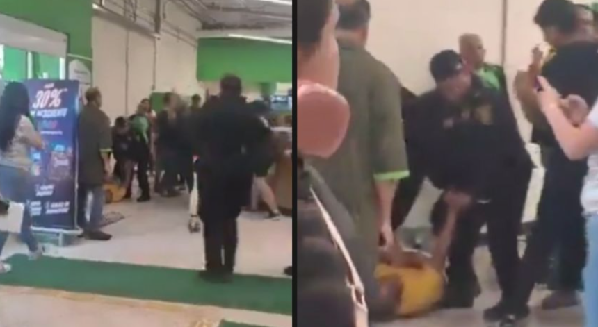 Videos difundidos en redes sociales muestran el instante en que un elemento de la Secretaría de Seguridad Ciudadana (SSC) somete en el suelo a uno de los presuntos responsables, mientras a pocos metros clientes y trabajadores forcejean violentamente tras los señalamientos de robo.